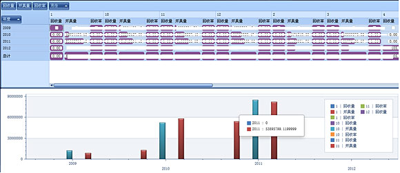 DXChart与透视网格控件集成例子中,DXChart显示柱状图时,图例应该显示12*3个项(12个月加3个度量值),但是在图例和系列中只显示10个,不知是怎么回事?